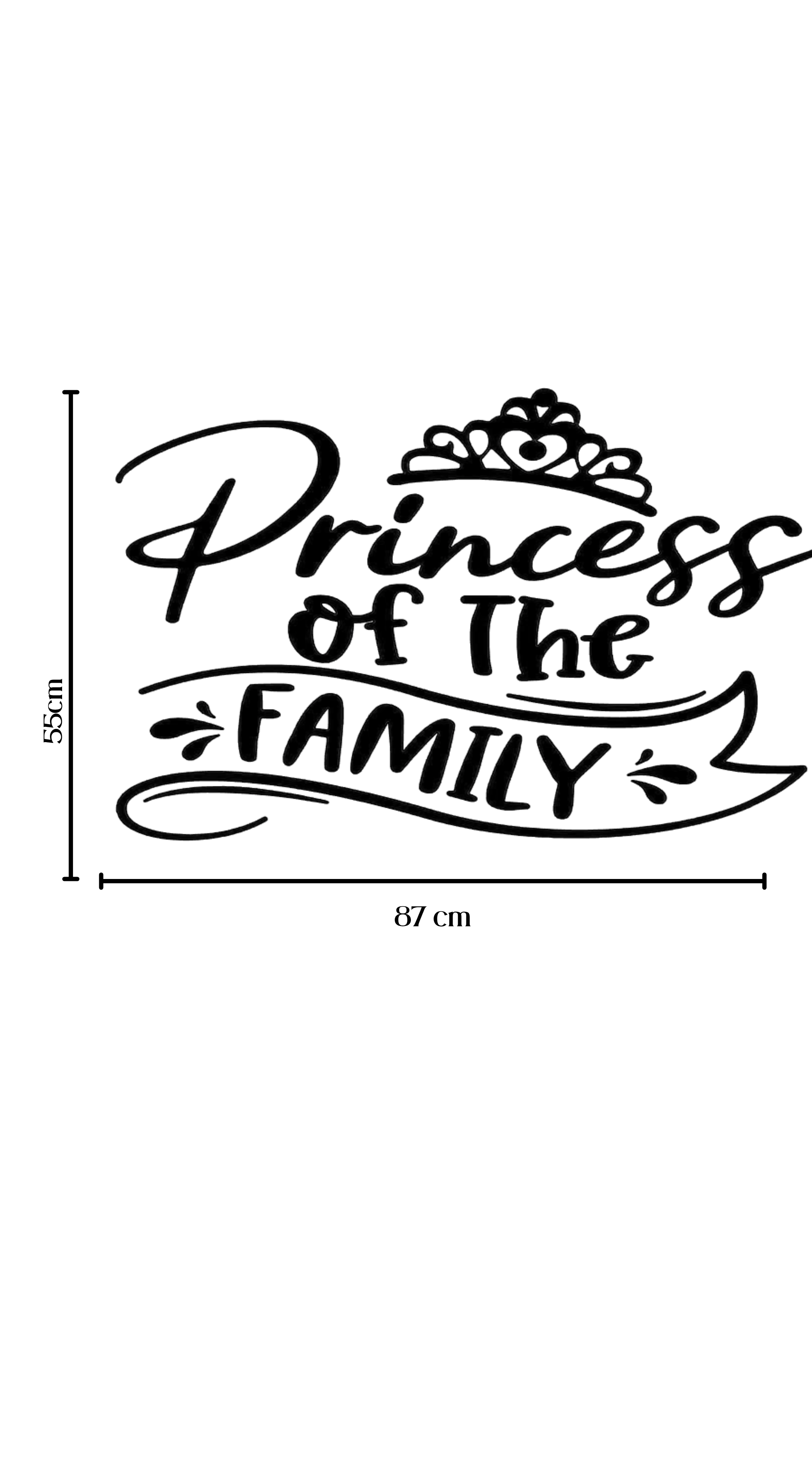 Transform your child's room into a royal retreat with our 'Princess of the Family' wall decal. Featuring elegant black script and a delicate crown motif, this charming decal adds a regal touch to any space. Crafted from high-quality, easy-to-apply vinyl, it's simple to install and remove without damage. Perfect for bedroom walls, nursery doors, or play areas, this decal brings a personalized statement that celebrates your little princess. Make your child's room as unique as she is with this delightful finishing touch.