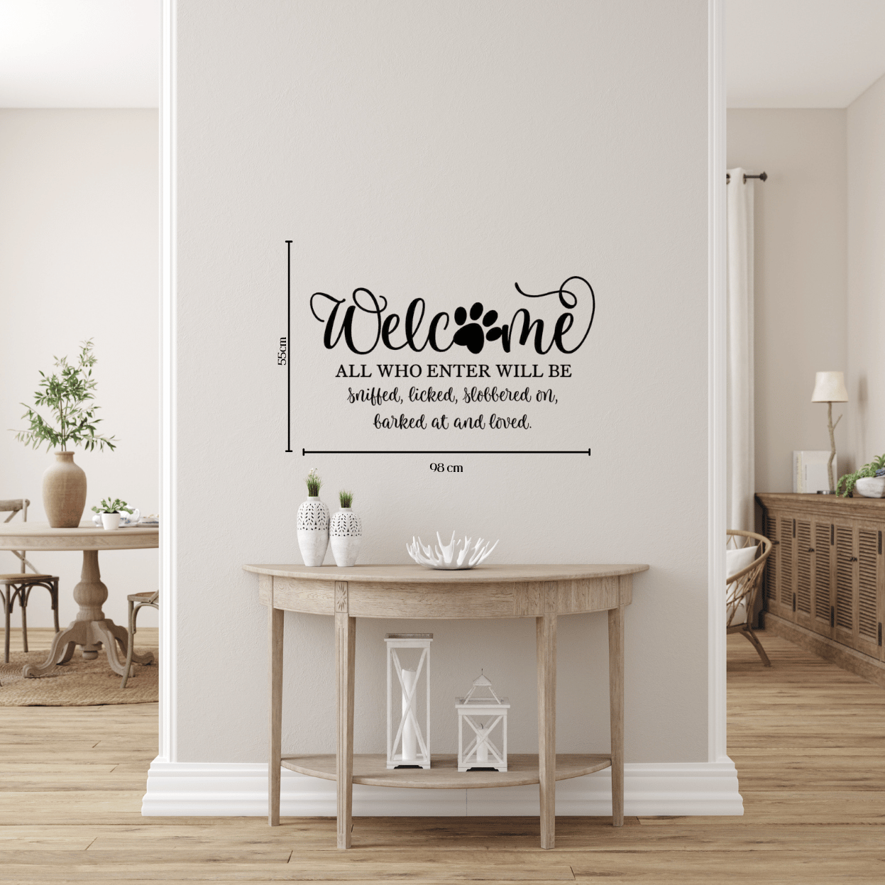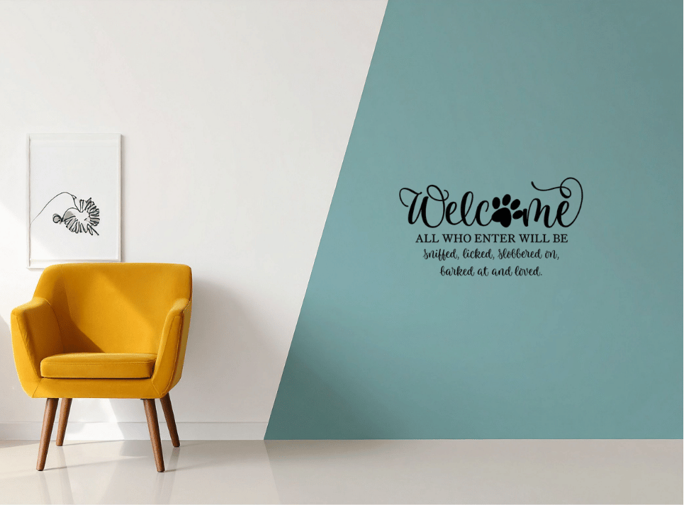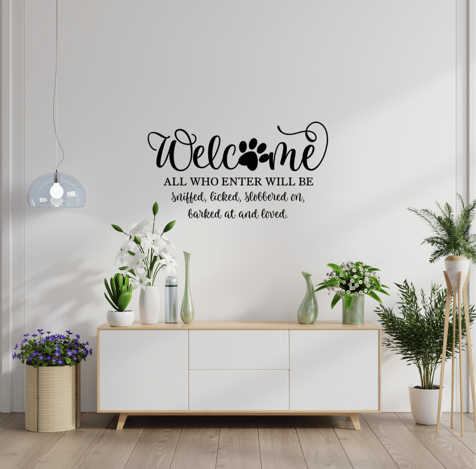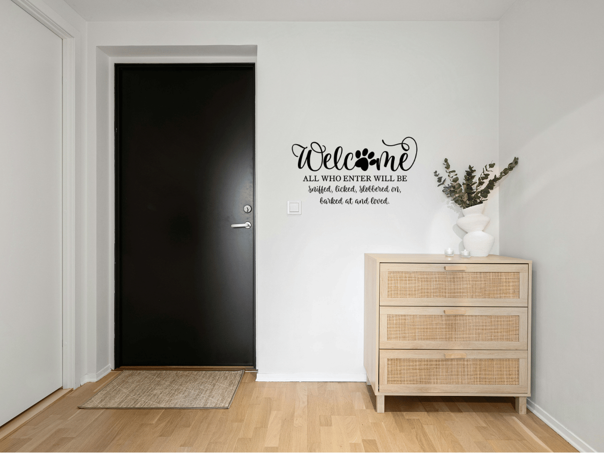 Welcome guests to your home with this charming wall decal featuring a cheerful ‘Welcome’ message, an adorable paw print, and a heartfelt quote. Perfect for entryways, living rooms, or hallways, this stylish decor piece instantly adds warmth and personality to any space. Made from high-quality, durable vinyl, the decal is easy to apply and remove without damaging your walls. It’s an ideal choice for pet lovers and anyone seeking a playful touch. Transform your entrance and create a welcoming atmosphere effortlessly!